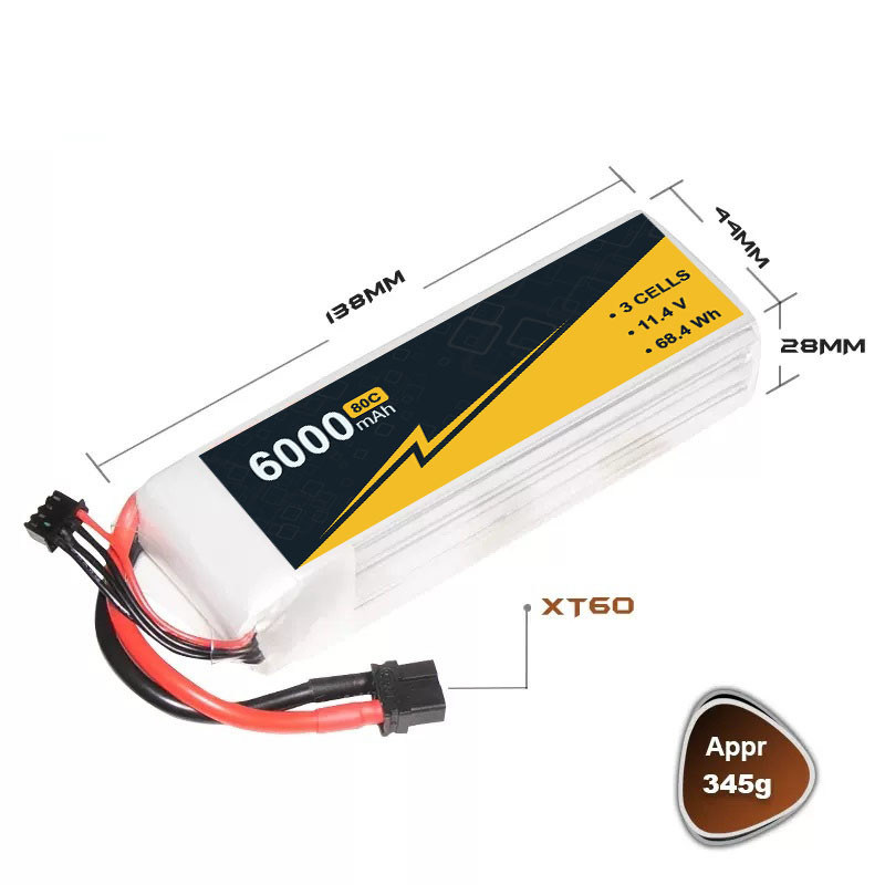 Nhà > các sản phẩm > FPV pin Lipo > 6000mAh 11,4v 3S1P FPV pin Lipo
